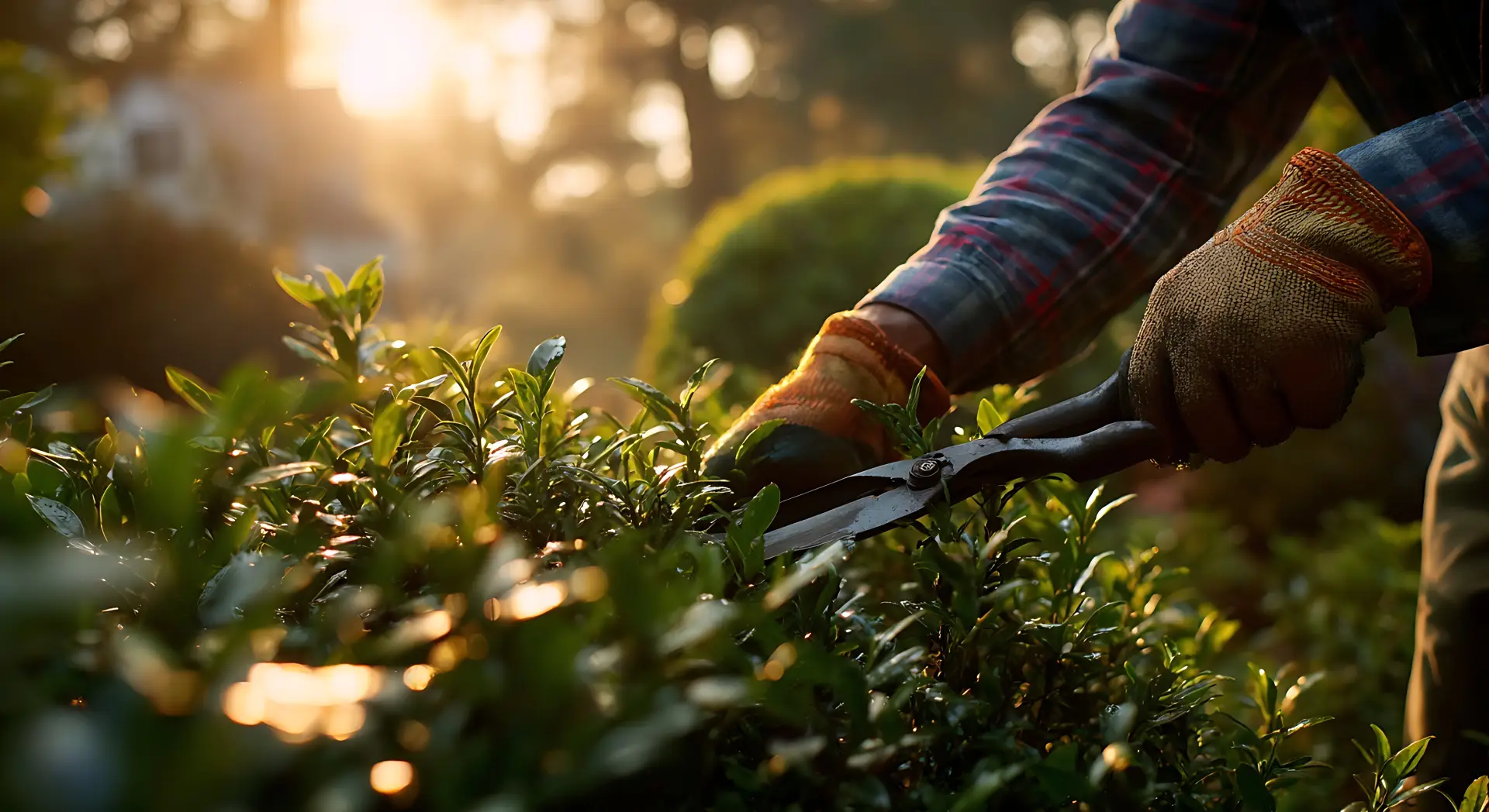 Des haies et arbres taillés pour des extérieurs harmonieux.
